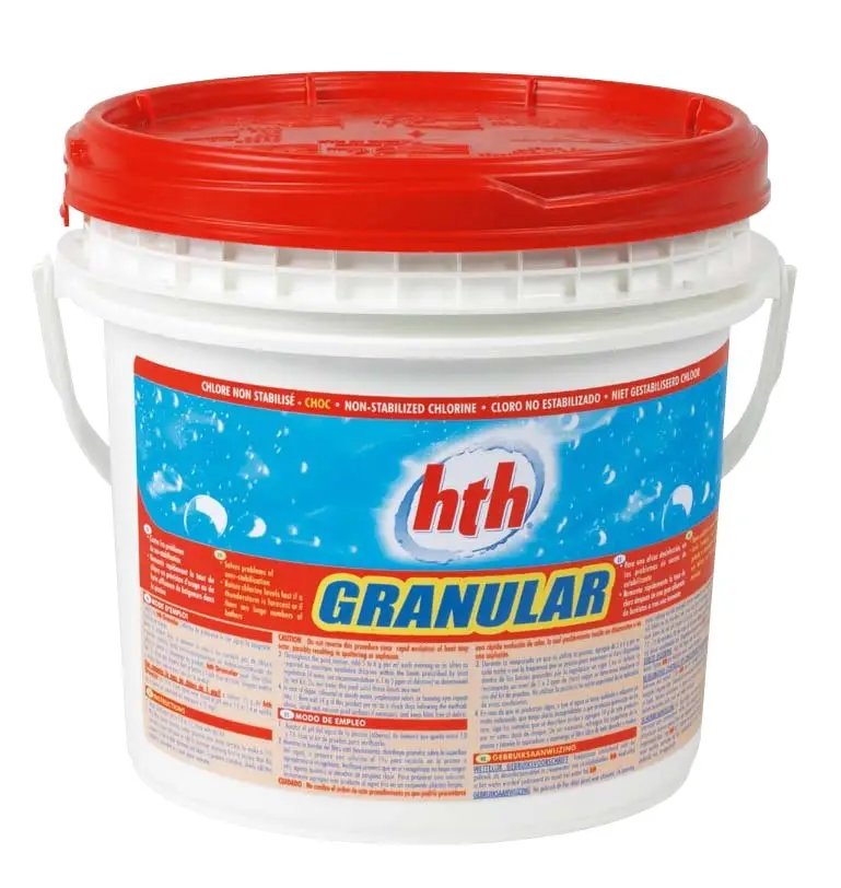 HTH klor er et let opløseligt klorgranulat baseret på Calciumhypochlorit (ustabiliseret klor). Danner ikke klorlås.